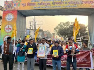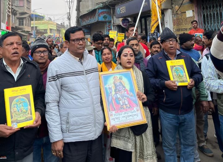 আশিস মণ্ডল, আমাদের ভারত, বীরভূম, ২৯ ডিসেম্বর: গীতাপাঠ নিয়ে শাসক দলের পক্ষ থেকে বিরূপ মন্তব্য ভেসে এসেছে সমাজ মাধ্যমে। এবার তৃণমূল কাউন্সিলরই গীতা হাতে হাঁটলেন শহরে। তবে তার পদযাত্রায় শাসক দলের কোনো বড় নেতৃত্বকে দেখা যায়নি।