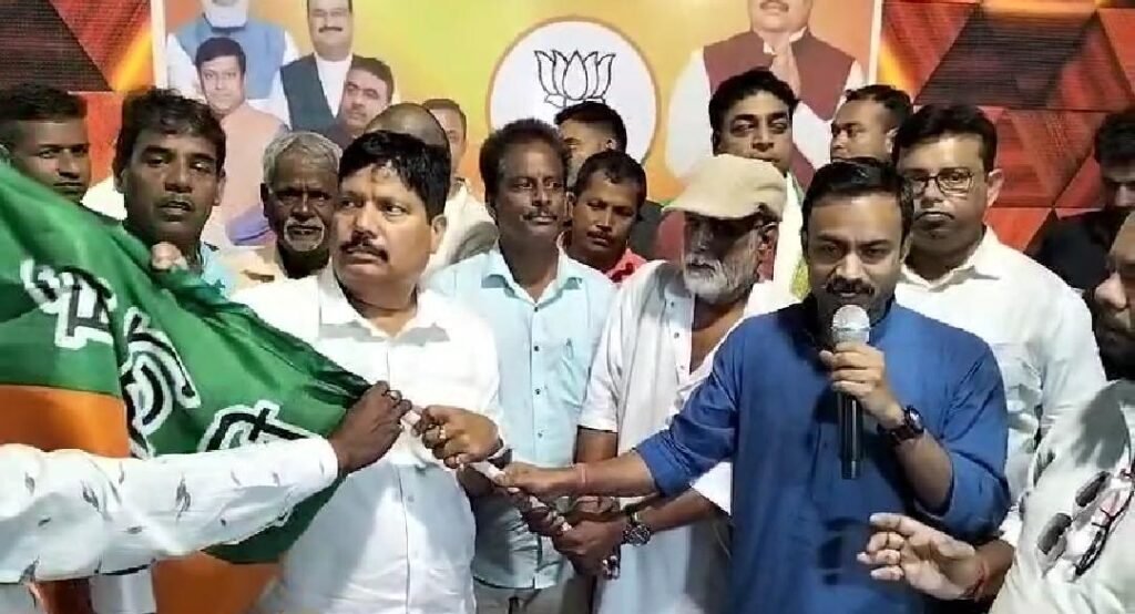 আমাদের ভারত, উত্তর ২৪ পরগণা, ৬ মে: ফের ভাঙন তৃণমূলে। এবার আমডাঙ্গা ব্লক তৃণমূলের কার্যকরী সভাপতি রবীন্দ্রনাথ ঘোষ সদলবলে বিজেপিতে যোগ দিলেন। নৈহাটির সিংহ ভবন কার্যালয়ে বিজেপি প্রার্থী অর্জুন সিং ও ব্যারাকপুর জেলার সভাপতি মনোজ ব্যানার্জির উপস্থিতিতে রবীন্দ্রনাথবাবু ছাড়াও তৃণমূলের সংখ্যালঘু সেলের কয়েকজন গেরুয়া শিবিরে যোগ দিলেন। যোগদান নিয়ে বিজেপি প্রার্থী অর্জুন সিং বলেন, আমডাঙ্গায় রবীন্দ্রনাথবাবুর যথেষ্ট প্রভাব আছে। উনি সুবক্তা। ওনাকে বিজেপি পরিবারে স্বাগত জানালাম। আমডাঙ্গা কেন্দ্র থেকেও তিনি জয়ের ব্যাপারে আশাবাদী।
