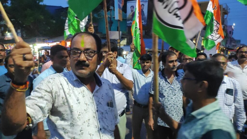 পার্থ খাঁড়া, আমাদের ভারত, পশ্চিম মেদিনীপুর, ২৩ জুন: নদিয়ার কালিয়াগঞ্জ বিধানসভা কেন্দ্রে উপনির্বাচনের জয়লাভ করেছে তৃণমূল৷ তারই আনন্দে সোমবার বিকেলে পশ্চিম মেদিনীপুর জেলার গড়বেতা তিন নম্বর ব্লকের চন্দ্রকোনা রোড শহরে বিজয় মিছিল করলো ব্লক তৃণমূল।