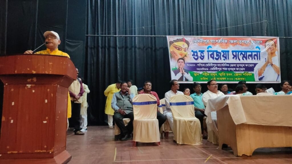 পার্থ খাঁড়া, আমাদের ভারত, পশ্চিম মেদিনীপুর, ১০ নভেম্বর: আজ মেদিনীপুরের প্রদ্যুত স্মৃতি ভবনে বিজয়া সম্মেলন অনুষ্ঠিত হলো তৃণমূলের মেদিনীপুর সাংগঠনিক জেলার উদ্যোগে। এই মাসের এক তারিখ থেকে দশ তারিখ পর্যন্ত দলীয় নির্দেশে রাজ্যের সমস্ত অঞ্চল থেকে জেলার সমস্ত স্তরে বিজয়া সম্মিলনী এবং গুণীজন সম্বর্ধনার পাশাপাশি কেন্দ্রীয় সরকারের জনস্বার্থ বিরোধী কার্যকলাপের বিরুদ্ধে লাগাতার আন্দোলন গড়ে তোলার ডাক দেওয়া হয়। তারই অঙ্গ হিসেবে পশ্চিম মেদিনীপুরের মেদিনীপুর সাংগঠনিক তৃণমূল কংগ্রেসের উদ্যোগে গুণীজন সংবর্ধনা ও বিজয়া সম্মিলনী অনুষ্ঠিত হয়।