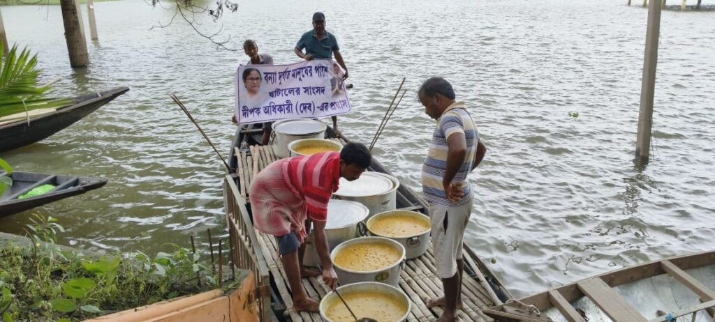 পার্থ খাঁড়া, আমাদের ভারত, পশ্চিম মেদিনীপুর, ২৯ সেপ্টেম্বর: ঘাটাল মহকুমা ও পার্শ্ববর্তী এলাকার বন্যা দুর্গতদের জন্য দুর্গাপুজো পর্যন্ত প্রতিদিন রান্না করা খাবার তুলে দেওয়ার ব্যবস্থা করছেন ঘাটালের সংসদ দীপক অধিকারী (দেব)। প্রতিদিন প্রায় চার হাজার জনকে ওই রান্না করা খাবার দেওয়া হচ্ছে।