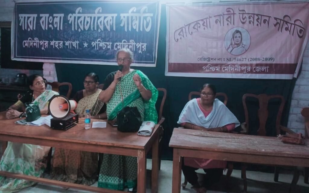 পার্থ খাঁড়া, আমাদের ভারত, পশ্চিম মেদিনীপুর, ১০ অক্টোবর: সারা বাংলা পরিচারিকা সমিতি ও রোকেয়া নারী উন্নয়ন সমিতির যৌথ উদ্যোগে বৃহস্পতিবার মেদিনীপুর শহরের মিত্র কম্পাউন্ডে অনুষ্ঠিত হলো বিজয়া সম্মেলন। উপস্থিত ছিলেন সারা বাংলা পরিচারিকা সমিতির জেলা সম্পাদিকা জয়শ্রী চক্রবর্তী, সহ-সম্পাদিকা ভবানী চক্রবর্তী, মহিলা সাংস্কৃতিক সংগঠনের জেলা সম্পাদিকা ঝর্ণা জানা এবং রোকেয়া নারী উন্নয়ন সমিতির জেলা ইনচার্জ ভবানী চক্রবর্তী।