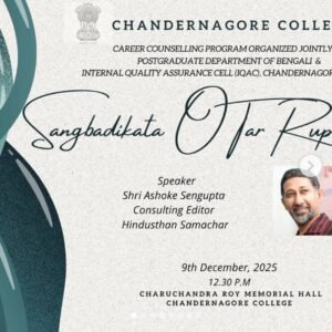 আমাদের ভারত, হুগলি, ১০ ডিসেম্বর: কীভাবে পড়বে? প্রস্তুতি নেবে কিভাবে? এই আলোচনার সঙ্গে সাংবাদিকতা ও তার রূপান্তর— মঙ্গলবার এ নিয়ে বসেছিল চর্চাবাসর। ব্যবস্থাপনায় ছিল চন্দননগর কলেজের স্নাতকোত্তর বাংলা বিভাগ ও কলেজের অভ্যন্তরীণ গুণমাণ নির্ণায়ক কমিটি (আইকিউএসি)।